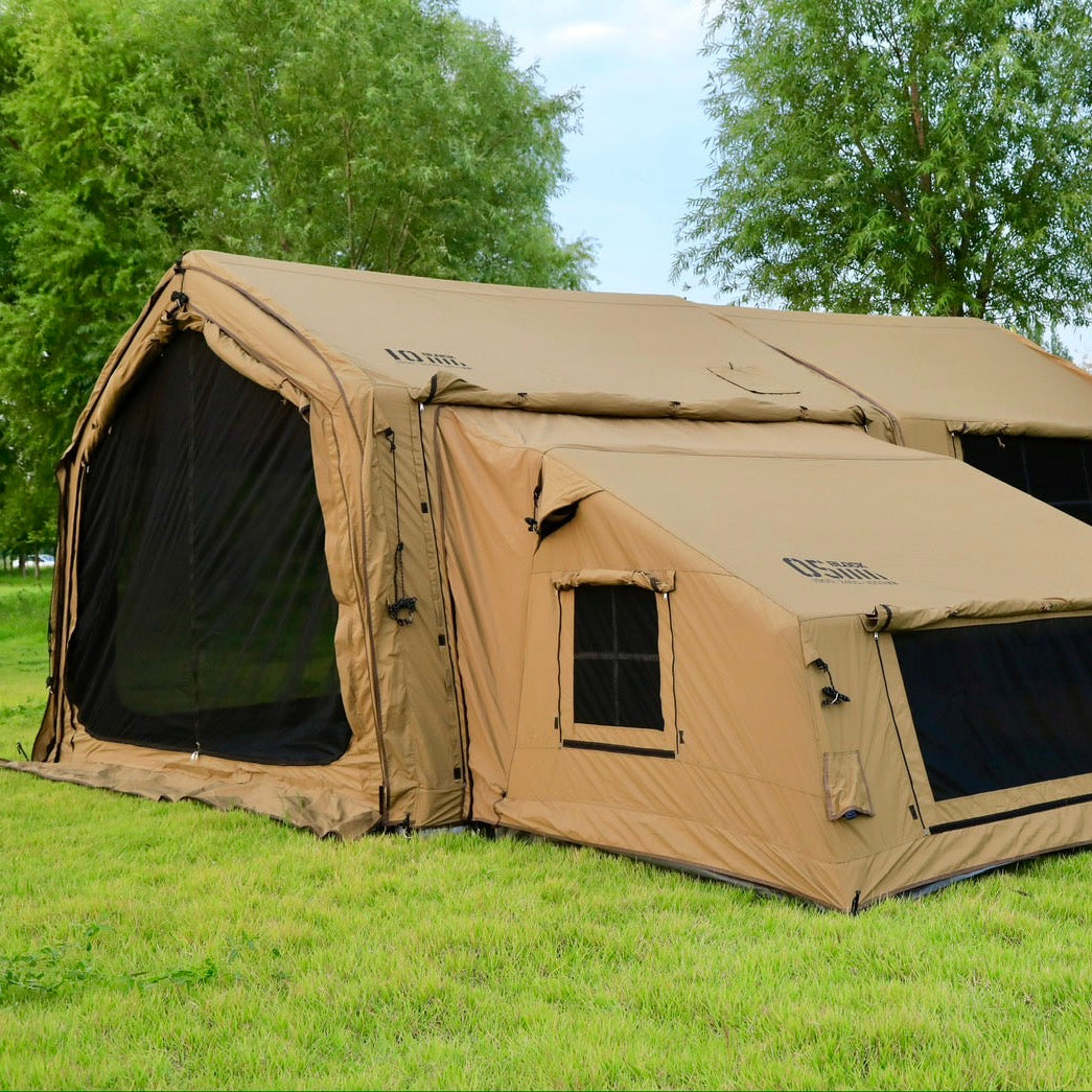 焚き火や薪ストーブを考慮した仕様、強度あるエアフレーム構造。非常時のシェルターとしても安心。