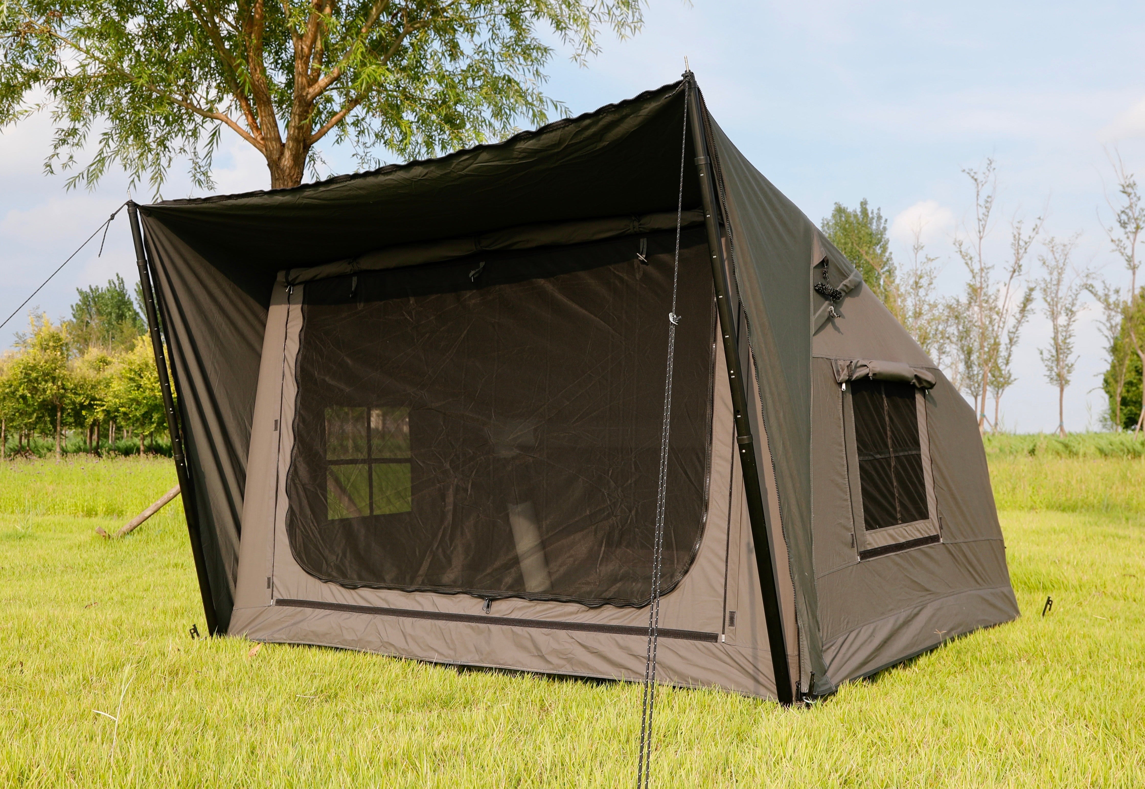 焚き火や薪ストーブを考慮した仕様、強度あるエアフレーム構造。非常時のシェルターとしても安心。